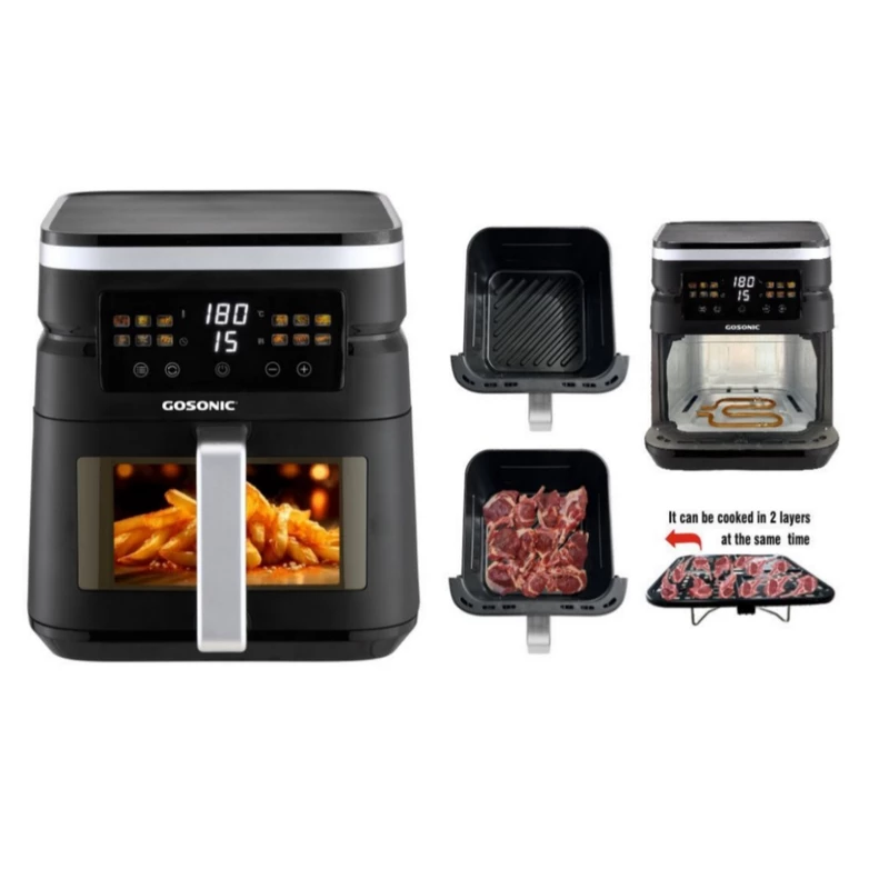 سرخ کن بدون روغن دیجیتال گوسونیک GAF-837 یکی از محصولات بینظیر با طراحی منحصر به فرد و ساخت 2024 از کمپانی گوسونیک است که سبب کاهش 80 درصدی مصرف روغن شده و غذاها را با میزان مصرف بسیار پایین یا بدون روغن سالم آماده میکند. این سرخ کن از گوسونیک دارای توان مصرفی 2000 وات است. و دارای دو المنت برای پخت میباشد و از جدیدترین و بهترین المنت های طلایی به کار گرفته شده است. گنجایش مخزن این سرخ کن 7 لیتر است. پنل کنترلی این دستگاه به صورت لمسی طراحی شده است و با یک لمس غذاهای مورد علاقهی شما را آماده میکند. سرخ کن بدون روغن دیجیتال گوسونیک GAF-837 دارای سیستم تایمر و تنظیم دما است که قابلیتهای پر کاربردی میباشند. به کمک برنامههای پخت از پیش تعیین شده میتوانید غذاهای لذیذ را در کوتاهترین زمان آماده کنید. برنامه های پخت این محصول جدید بیشتر شده و دارای 12 برنامه پخت میباشد. با این سرخکن میتوانید انواع غذا ها مانند؛ گوشت و ماهی کبابی، مرغ و میگوی سوخاری، سیب زمینی سرخ شده، قارچ خوشمزه، بخارپز کردن سبزیجات و … را آماده کنید و همچنین انواع غذای منجمد را گرم نمایید.دارای برنامه پیش گرم کن است که قبل از شروع پخت،مخزن را گرم میکند و برای گرم کردن غذای اماده هم میتوان از ان استفاده کرد.